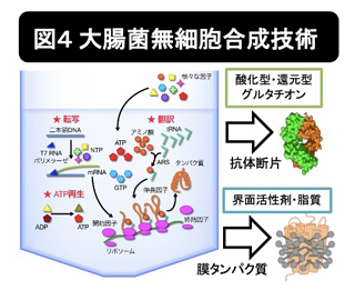 ST7:タンパク質複合体の大腸菌無細胞合成技術 担当:理研―我々は長年に渡り、大腸菌無細胞合成技術に改良を加え、抗体フラグメントに関しては酸化型・還元型グルタチオンの添加条件の最適化、膜タンパク質に関しては脂質・界面活性剤の種類・濃度の最適化によって大量生産に成功している(図4)。